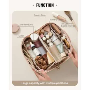 The interior is thoughtfully designed with organized storage solutions, including separate inner pockets perfect for brushes, foundations, and other essentials. Its multifunctional use extends beyond makeup, as it can also double as a toiletry bag, purse, or bathroom organizer, making it an excellent choice for business trips, vacations, or outdoor activities.