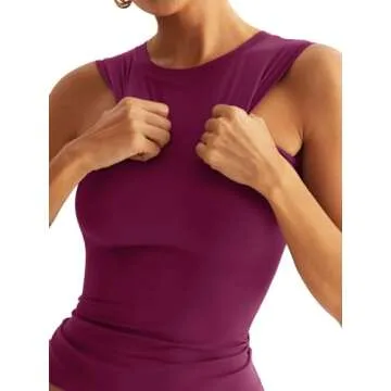Eachyes Womens Double Lined Racerback Tank Tops Sleeveless High Neck Fitted Basic Shirts Dark Purple Small