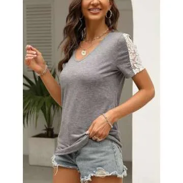 Eachyes Womens V Neck Tops Summer Short Sleeve T Shirts Dressy Casual Blouses Grey Large