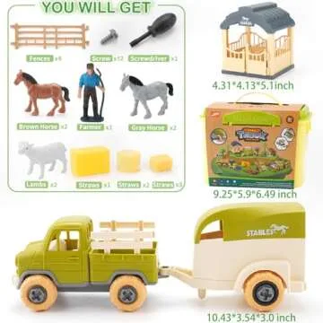 Eaciilee Sandbox Toys for Toddlers 1-3, DIY Take-Apart Truck, Trailer, Farm Animals, Horse, Lamb Figurines, Screwdriver - Sand Toy Trucks Toy PlaySet for Age 3-5 Years Old Kids