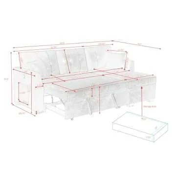 With a robust construction featuring a solid wood frame and durable premium steel structure, the sofa's stability is unmatched, ensuring that you and your guests will enjoy a restful sleep. The luxurious dutch velvet upholstery adds a touch of elegance while providing soft, plush comfort. Its reversible chaise lounge not only offers a stylish flair to your decor but also serves as a smart storage solution for stowing away clutter, keeping your living area neat and organized.