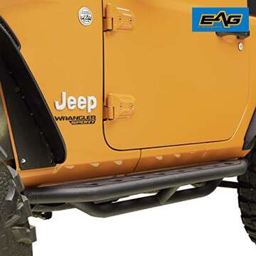 The EAG Tube Rock Sliders offer peace of mind knowing that your vehicle is protected from trail damage while enhancing its aggressive look. Whether you’re conquering bumpy trails or navigating through rough landscapes, you’ll appreciate the blend of form and function that these rock sliders provide. With EAG, enjoy your off-road adventures to the fullest without constant worry about your Wrangler's body integrity.