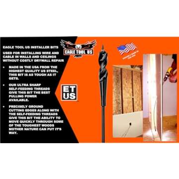 Eagle Tool US ESP56272 Flex Shank Installer Drill Bit, Screw Point, 9/16-Inch by 72-Inch, 3/16-Inch Shank,Made in The USA