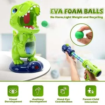 This complete package contains everything you need for an entertaining game session: 48 foam balls and two air pump guns. It’s not just a toy; it’s perfect for practicing your aim and enhancing coordination! As you shoot those foam balls, you’ll hear the dinosaur's playful sounds and watch the digital LCD scoring system tally your points, transforming your home into a mini carnival.