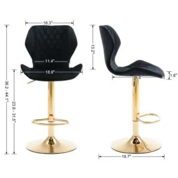 Show moreIf you’re searching for the ultimate combination of style, comfort, and versatility in your home furniture, look no further than the EALSON Velvet Bar Stools. Crafted with a unique design featuring exquisite diamond-shaped lines, these stunning bar stools add a chic touch to any environment. The lush black velvet upholstery not only exudes elegance but also provides exceptional comfort, making these bar stools perfect companions whether you’re enjoying breakfast, hosting friends at the bar, or just unwinding after a long day. Adjustable in height from 36.2” to 44.1”, each stool accommodates various counter heights, ensuring you always find the perfect seating solution.