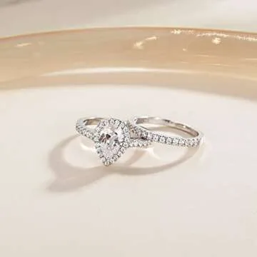 Show more Discover the magic of love and commitment with our exquisite Tear Drop Promise Ring crafted in solid 925 sterling silver. Each ring is lovingly stamped with S925 to ensure its authenticity. The centerpiece features a stunning 1.5 ct pear-cut halo CZ stone, skillfully hand-set to provide a sparkling display that rivals precious gems. Surrounding the enchanting main stone are petite, high-quality CZ stones set in a 5-Prong-Setting design that guarantees they stay securely in place, making it the perfect piece for expressing your everlasting love.