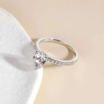 Show more Introducing the EAMTI 2CT 925 Sterling Silver Engagement Rings – an embodiment of elegance and timeless beauty. Crafted with precision from solid 925 sterling silver and featuring a mesmerizing pear cut cubic zirconia, this stunning teardrop wedding band is designed for the modern woman who seeks both glamour and affordability. Ideal for engagements, weddings, or simply making a statement, this exquisite ring easily passes for the real thing, making it a fabulous addition to any jewelry collection.