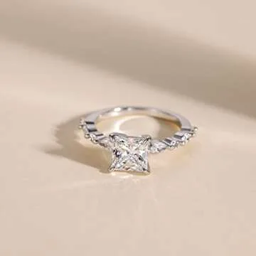 EAMTI 2CT Sterling Silver Princess Cut Engagement Ring - Sparkling CZ Wedding Band for Women