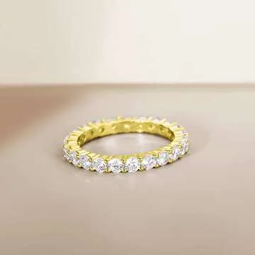 EAMTI 3mm 925 Sterling Silver Wedding Band Round Cubic Zirconia Full Eternity Stackable Engagement Ring for Women Size 3-13