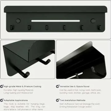 Show moreIntroducing the ultimate blend of style and functionality tailored for today's busy lifestyle, the Eanilnaz Key Holder is not just a tool, but a stylish accessory for your home. With 6 sturdy hooks ready to hold your keys, and an additional shelf that serves as a convenient mail tray, this key holder transforms clutter into an organized, chic solution. Its compact dimensions of 9.6(L) x 2.5(H) x 1.7(W) inches make it an ideal fit for any space—from entryways to kitchens or bathrooms—ensuring it meets your needs without overwhelming your decor.