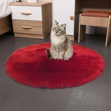 Eanpet Faux Fur Rug Sheepskin Chair Cushion Pad - Fluffy Luxury 18x18 Round Seat Cover for Home Decor