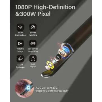 Ear Care Wax Removal Tool, Bebird Ear Canal Camera, Wax Removal Kit with 6LED Light, Cleaner Ear with Camera and Light Built-in WiFi with Soft Silicone Ear Scoops, Ear Canal Camera for iOS & Android