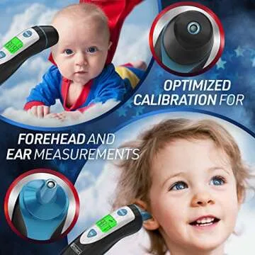 Show more Introducing the Ear Thermometer for Baby and Kids, a cutting-edge infrared forehead thermometer designed for swift, accurate temperature readings for all ages—from tiny infants to adults. This versatile thermometer offers a seamless way to monitor fevers, ensuring you never miss a critical moment in your child's health. With a user-friendly interface and clinically validated technology, it is perfect for both indoor and outdoor settings, and its compact design makes it ideal for on-the-go parenting.