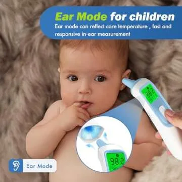 Ear Thermometer for Baby, ELERA Infrared LCD Thermometer with Automatic Switching Mode of Ear & Forehead, 1s Measurement, 4 Color Backlight Display with Fever Indicator