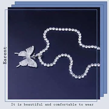 Show moreIntroducing the stunning EARENT Rhinestone Butterfly Choker Necklace, a captivating accessory that seamlessly blends elegance and whimsy. This enchanting piece is meticulously crafted from high-quality alloy and adorned with exquisite rhinestones that sparkle in the light. The beautiful butterfly pendant symbolizes transformation and joy, making this necklace not just an accessory, but a personal statement reflecting your unique style. With an adjustable length of 16.1 inches (41 cm) and an extension of 2.7 inches (7 cm), you can easily customize the fit to ensure it sits beautifully around your neck. Whether you're attending a special event, a casual outing, or simply adding a touch of glamour to your everyday wear, this necklace is designed to dazzle your admirers.