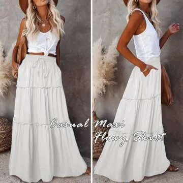 EARKOHA Womens Casual High Waist Tie Paisley Print Long Maxi Skirt with Pockets Solid-White M