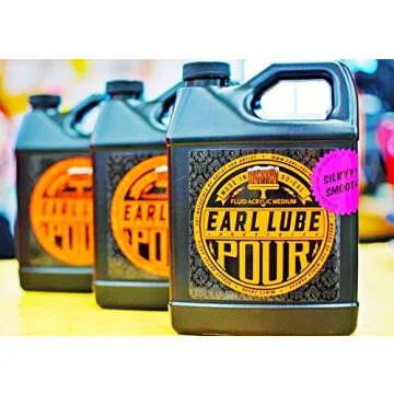 Show more Unleash your artistic potential with the Earl Lube Pour Fluid Pouring Medium. This top-notch, 32oz medium is specially designed for artists looking to enhance their acrylic pouring techniques with ease. Ideal for both beginners and professionals, this medium not only functions as a diluent but also acts as a flow agent and binder, delivering a smooth and consistent texture with every pour. The non-toxic, minty formulation ensures a pleasant work environment while providing a stunning, clear matte finish upon drying. Whether you're experimenting with cells or crafting intricate designs, Earl Lube is the perfect companion for your creative journey.