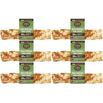 Earth Animal No-Hide Pork Chews - Delicious 4-Inch Treats for Dogs (6 Count)