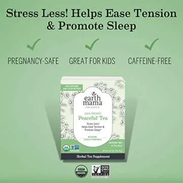 Show more Organic Peaceful Tea is your ultimate companion for tranquility and relaxation, specially crafted for both expectant and new mothers as well as anyone feeling the stresses of daily life. This USDA certified 100% organic blend, expertly formulated by a nurse and herbalist, combines a soothing mix of organic lemon balm, chamomile, oatstraw, and a hint of red raspberry leaf with bright orange peel that harmonize beautifully to uplift your mood and spirits. Perfectly designed to be safe for pregnant and breastfeeding women, this tea promotes deep relaxation, making every sip a nurturing experience. Whether you're winding down after a hectic day or simply taking a moment for yourself, this tea works wonders in helping you find your serenity.