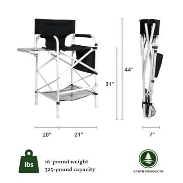 Earth Products Executive VIP Tall Directors Chair with Folding Side Table - 31" Seat Height, Lightweight & 375LBS Max Load