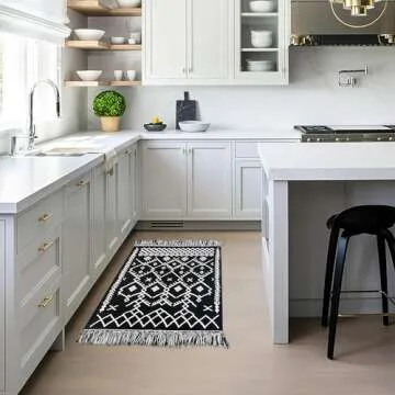 EARTHALL Washable Small Area Rug 2x3 Ft, Black and White Boho Entryway Rug, Rubber Backed Rugs for Entryway, Indoor Outdoor Door Mat, Throw Rugs for Kitchen Entryway Front Entrance Porch Bathroom
