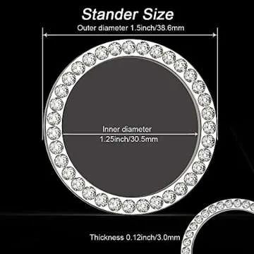 Show more Step into a world of glamour with the Earthland Sparkling Rhinestone Car Ring Set for Interior Glam. This exquisite collection features two stunning sparkling embellishments designed to transform your vehicle's interior with a touch of bling. Ideal for enhancing the aesthetic around your push-to-start ignition or any control that deserves a touch of sparkle, each ring is meticulously crafted with high-quality rhinestones, ensuring not only a dazzling appearance but also lasting durability. You can relish in these beautiful accessories without compromising the elegance of your car's dashboard. Whether you enjoy a subtle touch of glamour or prefer it bold, these rings cater to every taste, adding just the right amount of chic flair.