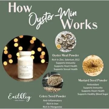 Show moreIntroducing the Earthley Wellness Oyster-Min! Elevate your health journey with our cutting-edge mineral capsules, meticulously formulated to provide an array of essential nutrients. Each capsule is a powerhouse blend of premium dehydrated oyster meat extract, mustard seed powder, and celery seed powder, designed to support your body's natural needs. With rigorous testing ensuring our oyster powder is free from heavy metals (less than 1 ppm), you can trust you're getting a safe and healthy supplement.