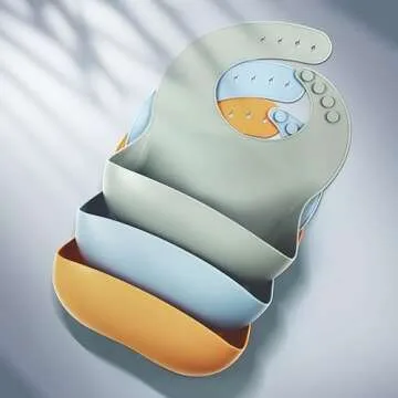 Eascrozn 3 Pack Silicone Bibs for Babies & Toddlers (6-72 months) BPA Free Unisex Soft Adjustable Fit Waterproof Feeding Baby Bibs