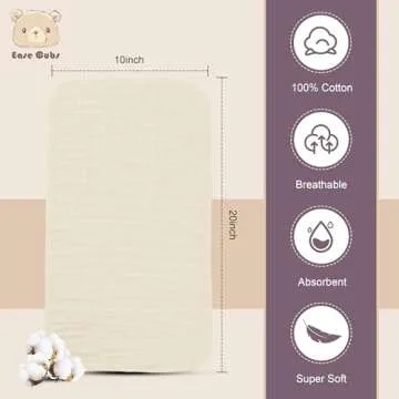 Ease Cubs Muslin Burp Cloths Large 100% Cotton Hand Washcloths for Boys & Girls, Baby Essentials Extra Absorbent and Soft Burping Rags for Newborn Registry (Ivory, 12-Pack, 20" X10")