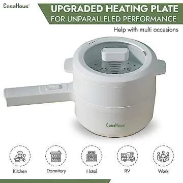 Show more The EASE HAUS Electric Hot Pot is your perfect kitchen companion, designed with a compact and portable style that fits seamlessly into any environment. Whether you are a student in a dorm, a traveler on the go, or someone with a cozy kitchen, this electric hot pot is the ultimate solution for easy cooking. Constructed with safety in mind, this pot features over-heating and dry-boil protection, ensuring a worry-free cooking experience. Additionally, it is completely BPA, PFOA, and PTFE FREE, allowing you to cook your meals with confidence.