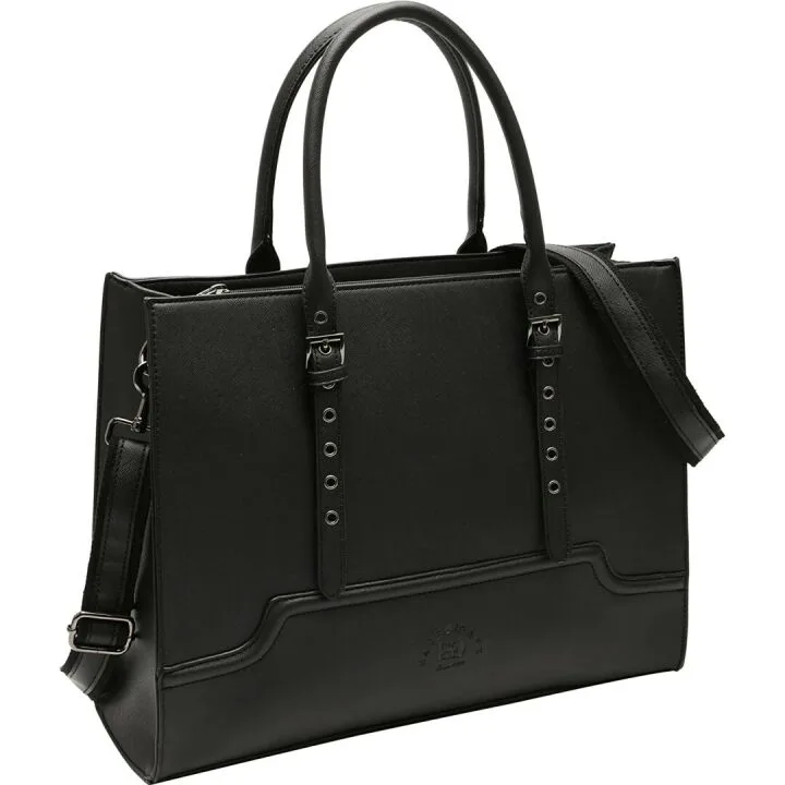 Show moreIntroducing the 15.6 Inch Laptop Tote, a beautiful blend of timeless style and modern functionality. Crafted from black Saffiano Grained Eco-leather, this tote bag exudes elegance and versatility. Switch effortlessly between its top handle and adjustable shoulder strap for an elegant transition from day to night. The bag features a spacious interior with four large compartments, two slip pockets, and one zip-fastening pocket, perfect for organizing all your essentials. Designed with a sleek, minimalistic shape and stylish metal hardware, this bag is an excellent gift for any woman seeking both style and practicality.