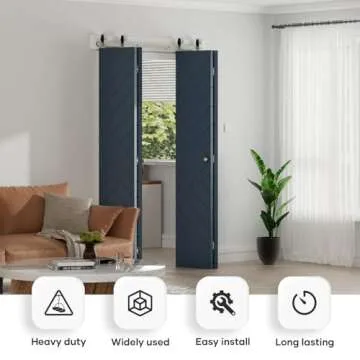 EaseLife 60"Brushed Nickel Bi-folding Sliding Barn Door Hardware Track Kit for 4 Closet Door,Top Mount,Heavy Duty,Slide Smoothly Quietly,Easy Install,No Door (Track Length 64"for Four 15" Wide Door)