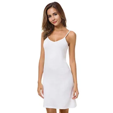 EaseWay Women's Basic Adjustable Spaghetti Strap Cami Under Mini Dress White