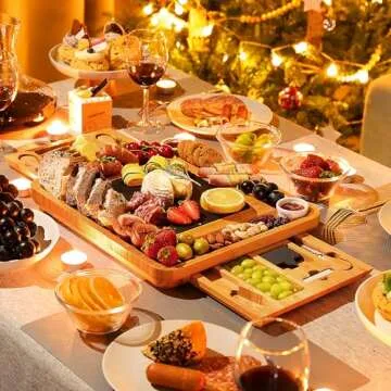 While there are many charcuterie boards on the market, the Easoger Large Bamboo Charcuterie Board stands out due to its combination of functionality and aesthetics. Competitors may offer similar sizes, but they often lack the unique features such as the integrated drawers for storage and the protective slate surface. Unlike many other boards, which often use less durable materials, the Moso Bamboo guarantees a long-lasting, eco-friendly solution for serving your favorite cheeses and meats, while also ensuring your dietary health.