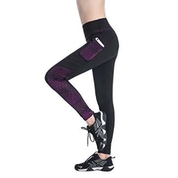 EAST HONG Women's Yoga Leggings Exercise Workout Pants Gym Tights (as1, alpha, m, regular, regular, Black/Purple)