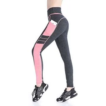 EAST HONG Women's Yoga Leggings Exercise Workout Pants Gym Tights (as1, alpha, s, regular, regular, Gray/Pink)