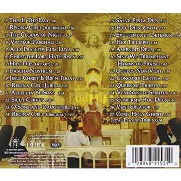 Show moreImmerse yourself in the serene and uplifting melodies of the Easter at Ephesus CD, a beautiful collection from the Benedictines of Mary. This unique album features an enchanting array of a cappella music that transcends time, capturing the essence of the Easter season with remarkable precision and grace. Featuring 27 tracks that range from traditional hymns to original compositions, the sisters' harmonies resonate with clarity and depth that soothe the soul. The album artfully includes beloved classics like 'Jesus Christ is Ris'n Today' alongside stunning pieces that take you through to Pentecost, making it a complete auditory journey through this sacred time.