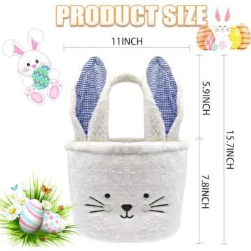 Easter Basket Egg Hunt Bunny Baskets for Kids Boy Girls Baby with White Cute Rabbit Ears Soft Plush Empty Bucket Bag Personalized Storage Candy Gift Baby Shower Wedding Party Decoration Supplies