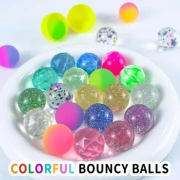 Show moreIntroducing the *Easter Basket Essentials: 24 Pack Bouncy Balls*—the ultimate addition to your spring celebrations! These vibrant and playful bouncy balls are designed to bring joy to children and adults alike. Perfectly sized at 1.26 inches, they fit seamlessly into Easter eggs, birthday parties, or summer goodie bags. With a bulk pack that includes 24 uniquely designed balls, every child will find their favorite among smooth, glittery, and faceted surfaces. Whether you’re hosting an Easter egg hunt, planning a birthday party, or looking to add some fun to your classroom, these bouncy balls are a must-have! Crafted from soft yet durable rubber, they bounce energetically on land and float gracefully in water, making them an excellent choice for pool games or playful bath times.