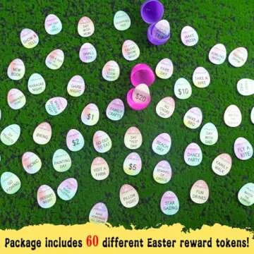 Show moreElevate your Easter celebrations with our **Easter Basket Stuffers, 60 Pack Easter Egg Tokens!** These delightful tokens are not just simple fillers; they are compact treasures measuring 1.5" x 2.3" that fit perfectly inside standard plastic Easter eggs. Each pack comes with 60 unique tokens, crafted to help you transform your holiday festivities into unforgettable adventures!