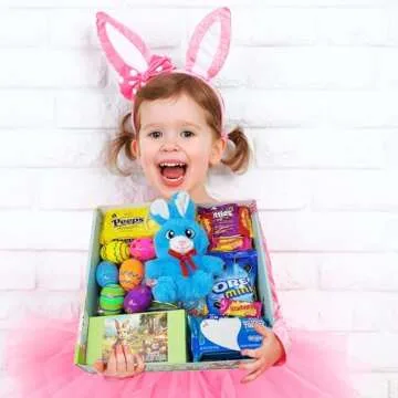Show more Introducing our delightful pre-filled Easter basket, guaranteed to bring joy to your little ones! This incredible package is crafted with love and care by a proud small family business. We believe in providing high-quality products, which is why each basket is assembled right here in the United States. Our team meticulously hand-selects every toy, snack, and game, ensuring they are fresh and perfect for your Easter celebrations. Your kids will absolutely adore the exciting assortment of fun toys, delicious treats, and engaging games packed within this colorful basket!