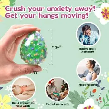 Show more Introducing the delightful Egg Shaped Stress Balls from our collection—perfectly designed to bring joy and relaxation to users of all ages! Each set comes with 18 colorful stress balls, crafted to be soft and comfortable, while measuring about 1.77” x 2.36”. These unique stress-relief tools are ideal for anyone needing a bit of assistance in managing tension and anxiety.