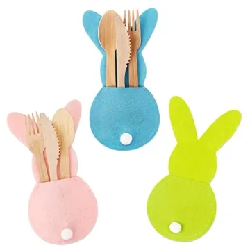 Easter Table Decor, 6 Easter Bunny Felt Cutlery Holder Easter Decorations, Reusable Utensil Décor Easter Table Decorations for the Home Spring Decorations and Easter Party Supplies
