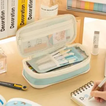 EASTHILL Big Capacity Pencil Case Large Pencil Pouch Stationery Pen Bag for Teen Girls-Blue