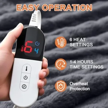 Easthome Electric Heated Blanket - Cozy Dark Gray Throw with 6 Heat Levels and Auto Shut-Off