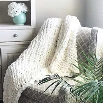 EASTSURE Chunky Knit Luxury Throw Blanket Soft Polyester Chenille Bulky Blankets for Cuddling up in Bed, on The Couch or Sofa - Large Cable Blanket (White) 50"x60"