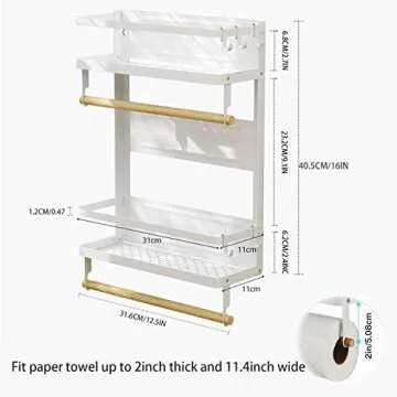 The rack also includes flexible wooden paper towel holders with two removable oak sticks that are compatible with standard-sized paper towels, plastic wraps, or even garbage bags in rolls. This added functionality makes it versatile for various kitchen tasks. Plus, the powerful three strong magnets ensure it holds a remarkable weight of up to 30LBS (14kg) securely on any metal surface without the fear of it falling off.