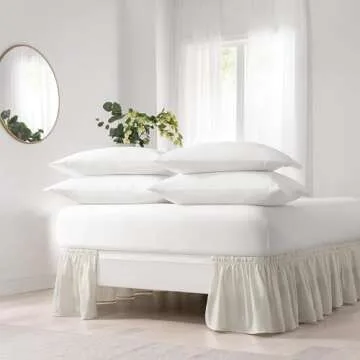 Show moreIntroducing the Easy Fit Solid Elastic Wrap Around Bed Skirt – the perfect solution to elevate your bedroom decor while providing functional benefits! Designed with your convenience in mind, this elegant bed skirt requires no heavy lifting of your mattress. Simply slip it effortlessly over your mattress for an instant style upgrade. Whether you have a twin, full, queen, or king-size bed, the versatile design accommodates them all with an impressive 15"-18" drop. Featuring a beautiful white color that complements any decor style, this bed skirt is a must-have for anyone looking to enhance their sleeping space.