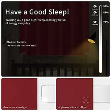 Show moreTransform your living space with the Easy-Going Blackout Curtains for Bedroom, designed to marry style with functionality. Crafted from high-quality polyester, these curtains offer a soft, heavy, and comfortable feel while boasting exquisite workmanship. The careful seaming and thread trimming ensure durability and a polished look that complements any room decor. Available in a stunning Christmas Red color, these curtains will not only enhance your interior aesthetics but also provide you with unparalleled practical benefits.