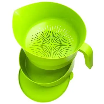 Show moreIntroducing the Easy Greasy Strain & Save Kitchen Colander, a game changer in your cooking routine! This hands-free wonder is designed to make draining grease and straining stocks easier than ever. With its heat-resistant container and included lid, you can confidently handle hot foods without the fear of burns. The innovative tilting mechanism allows the strainer to rest securely on your counter, freeing your hands for other essential cooking tasks. Say goodbye to greasy messes and hello to perfectly strained sauces and juices with this versatile colander!
